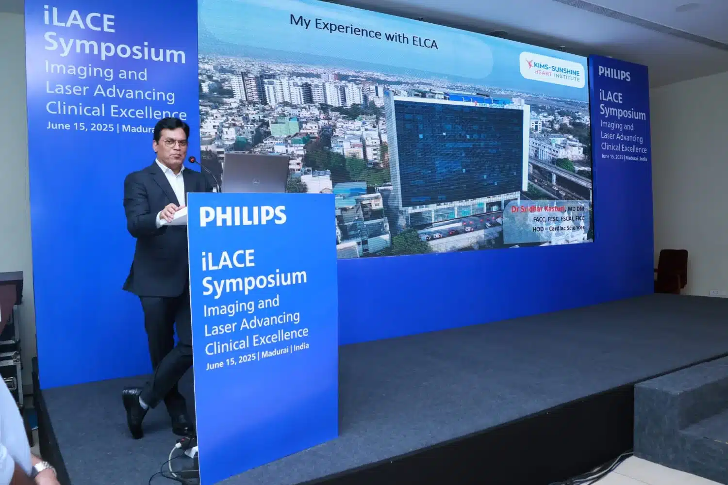 In a cardiology event attended by renowned cardiologists and cardiovascular experts from across India, Dr. Sridhar Kasturi, Senior Interventional Cardiologist and Head of Cardiology and Cardiothoracic Surgery at KIMS-SUNSHINE Hospitals, Begumpet, was invited as a speaker at the iLACE Symposium in Madurai. He shared his knowledge on the evolving role of intravascular imaging and functional assessment in improving PCI outcomes and also elaborated on evidence-based approaches, decision-making in complex coronary interventions and the practical application of imaging modalities for patient safety and precision.