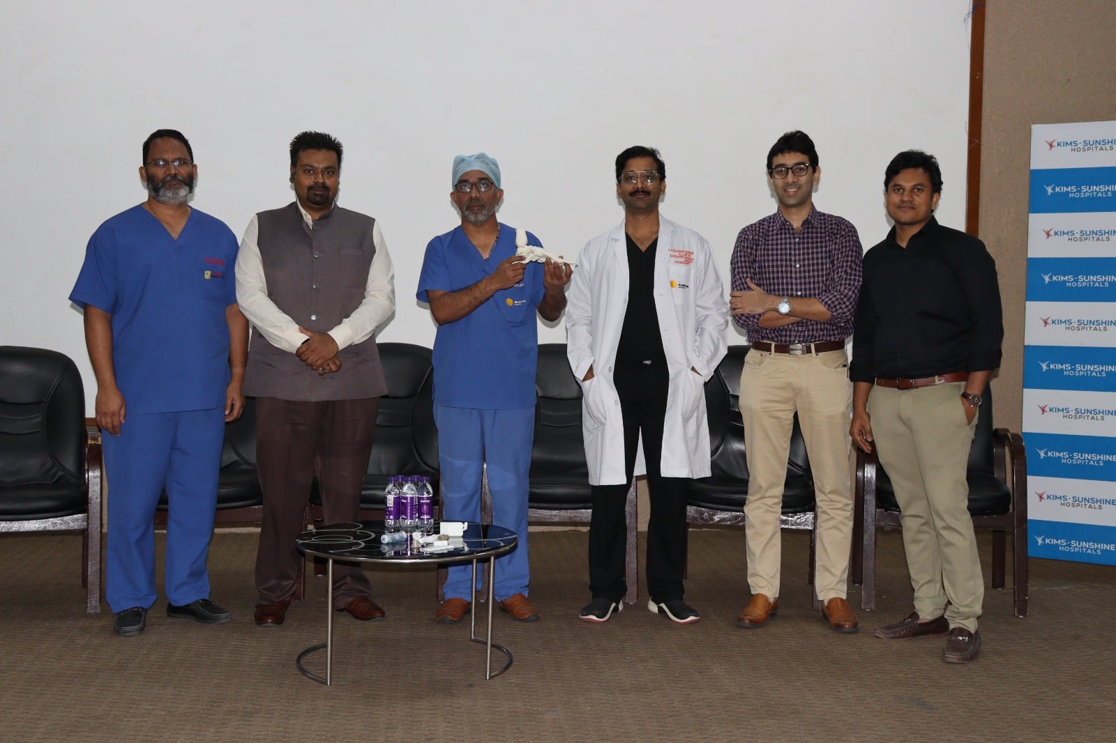 KIMS-Sunshine Hospitals, Secunderabad have successfully installed a special implant for ankle joint resurfacing surgery on a patient. Orthopaedic and trauma surgeon Dr. Kamalakar, Dr. Subramaniam led by professor Dr. Leif Rid from Sweden conducted the surgery which was successfully performed at KIMS-SUNSHINE Hospitals. A moment of pride for the orthopaedic healthcare field. The surgery promises to improve the quality of the patient’s ankle joint and significantly reduce pain, stopping or reducing the need for joint replacement surgery or ankle fusion. An episealer implant design is made based on MR or CT images. Through data processing, a 3D imaging model of the surface of the damaged area was generated for better understanding. Later, the damaged tissue was removed and the implant was placed in the area.