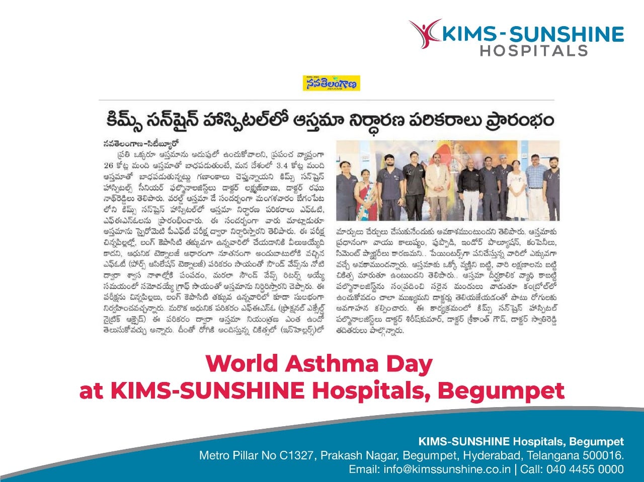 KIMS-Sunshine Hospital has introduced two new technologically advanced devices for diagnosing asthma. These advancements allow for easier detection, especially in young children and those with lower lung capacity.