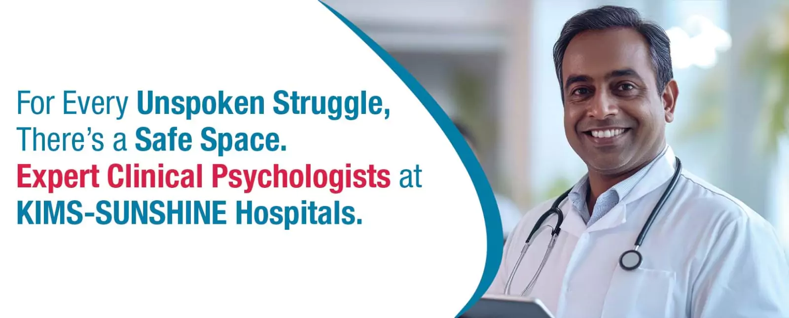 At KIMS-Sunshine Hospital, Begumpet near Secunderabad, Hyderabad, our Clinical Psychology Department offers expert evaluation, diagnosis and therapy for individuals facing emotional, behavioural and mental health challenges. With highly qualified clinical psychologists and evidence-based therapeutic methods, we help patients restore balance, improve resilience and enhance quality of life.