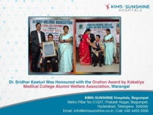 Dr. Sridhar Kasturi Was Honoured with the Oration Award by Kakatiya Medical College Alumni Welfare Association, Warangal Dr. Sridhar Kasturi has been conferred the prestigious Oration Award by the Kakatiya Medical College Alumni Welfare Association (KMCAWA), Warangal. This recognition celebrates his continued contributions to clinical excellence, academic leadership and his commitment to advancing healthcare through knowledge-sharing and mentorship. As part of the award ceremony, Dr. Sridhar Kasturi delivered an insightful oration, sharing his expertise and experiences with an esteemed gathering of alumni, faculty and medical professionals. [caption id="attachment_43840" align="alignnone" width="720"] #image_title[/caption]