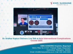 Dr. Sridhar Kasturi Delivers Live Talk at Asia Interventional Complications Course 2025 Dr. Sridhar Kasturi delivered a live talk at the Asia Interventional Complications Course 2025, a reputed academic platform that brings together interventional experts to discuss real-world challenges, critical decision-making and advanced solutions in patient care. During the session, Dr. Sridhar Kasturi highlighted key clinical insights and practical approaches to managing complications in interventional procedures, emphasising patient safety, precision and timely intervention.